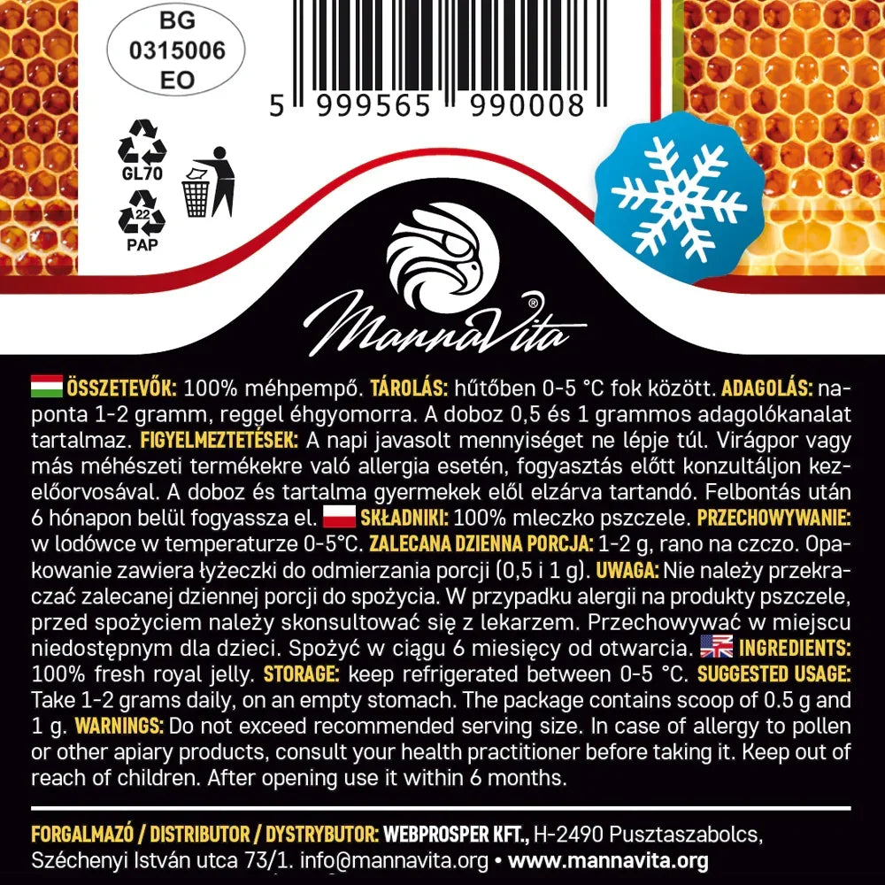 Matična mliječ je isključivo hrana matice pčele u košnici i jedna od najkompleksnijih i najhranjivijih tvari u prirodi. Može se uključiti u terapije za širok spektar zdravstvenih stanja. Mnogi ljudi konzumiraju Mannavita matičnu mliječ kao preventivnu mjeru za podršku imunitetu, detoksikaciju, regeneraciju jetre i ravnotežu hormona.